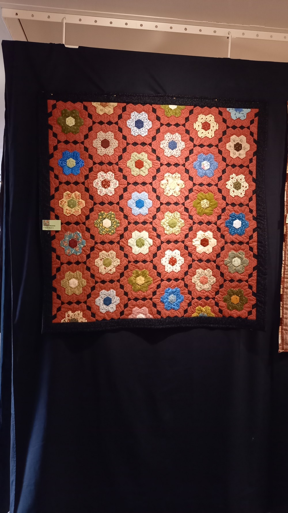 Avec générosité, Carol a accroché mon quilt exposé à Houston en 2024. Merciiiii !