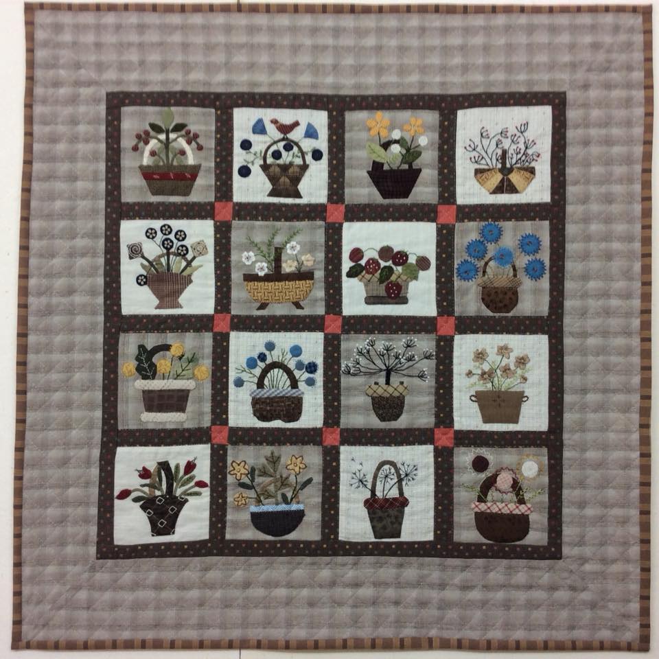 Cette année, il fallait reproduire le bloc des barattes, plus connu sous le nom anglais de « churndash ». Je reste toujours dans le groupe des quilteuses traditionnelles mais sachez que Barb invite aussi les quilteuses modernes à participer !