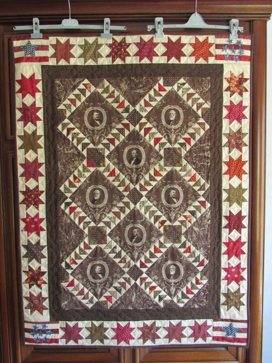 Je faisais uniquement du point compté à l’époque et lorsque je me suis inscrite aux cours de patchwork par curiosité, je n’aurais jamais imaginé tomber dans la marmite comme Obélix !! J’ai continué en autodidacte par la suite ! Ce quilt, très simple, est le premier que j’ai crée en 2016. Il est le départ de tout….les tissus ont été acheté en allant à Paducah, pas très loin de Nashville dans un petit quilt shop….